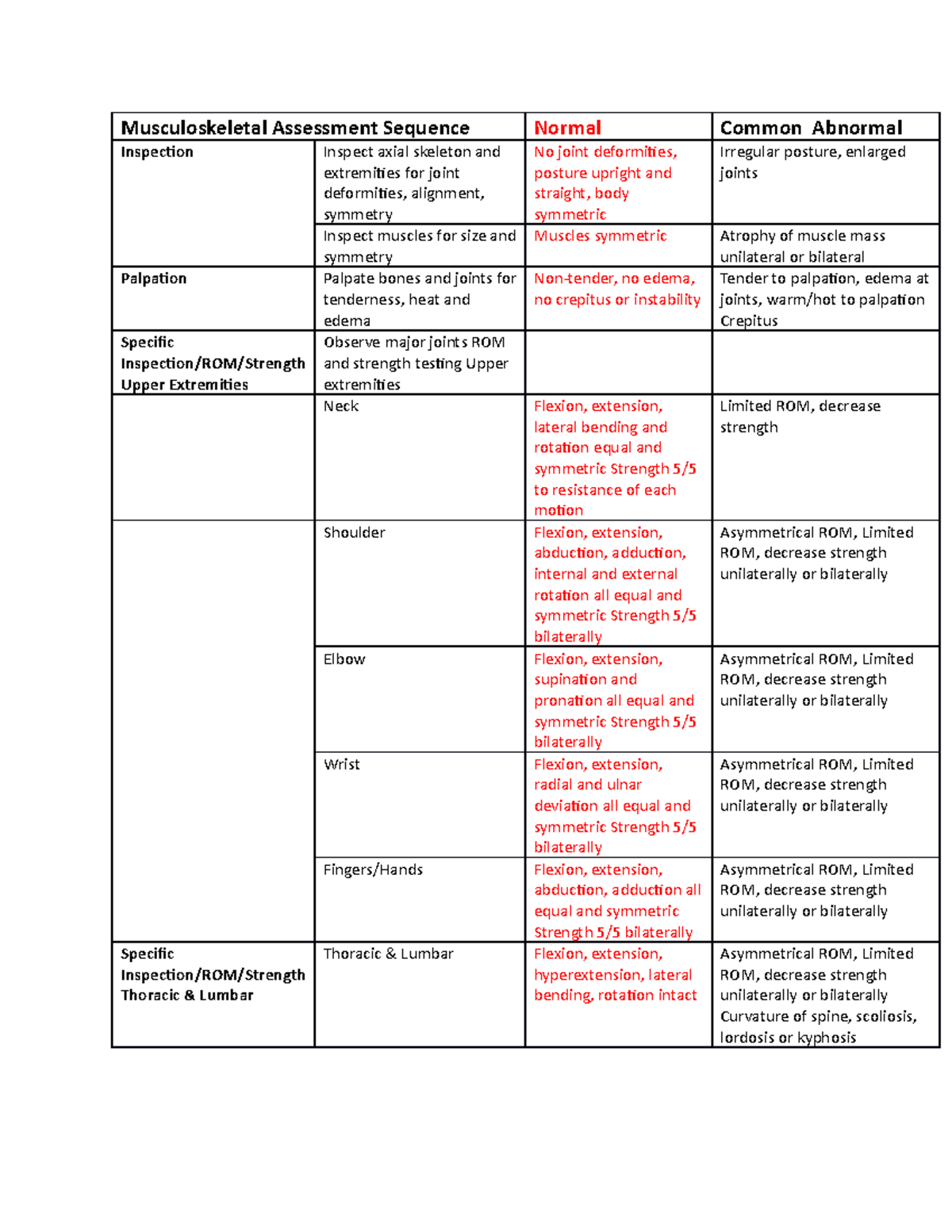 Musculoskeletal Assessment Sequence Studocu - An assessment battery should address the full spectrum of upper extremity performance, including documentation of changes in vocational, avocational, and daily living skills (dls) is important, as is.
