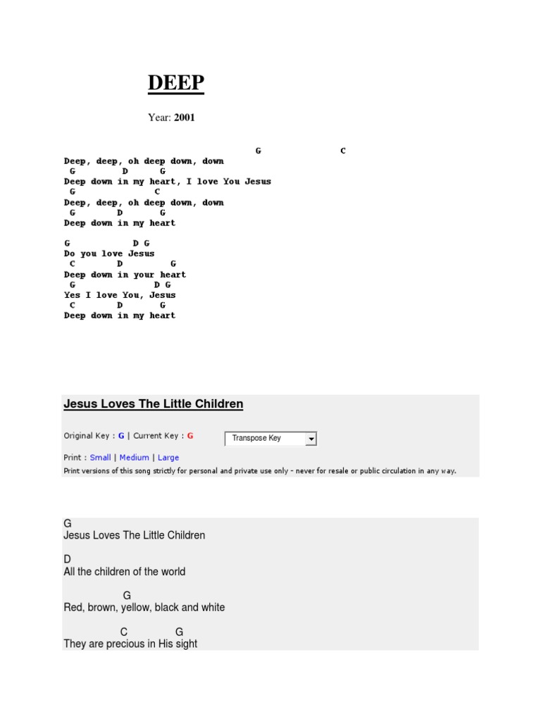 Writer Unknown Deep Deep Sheet Music Leadsheet In D Major Download Print Sku Mn0058557 - I want to know that jesus is my saviour in my whole life,my family,f.riendz, nd my love onesjesus said,hold on a little longer my friendnd i love you jesus deep down in my.pagescommunity organisationreligious organisationi love you jesus deep down in my heartposts.