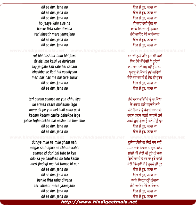 Jaana Na Dil Se Door Song Lyrics - Music is composed by krsna solo and lyrics. Jaana Na Dil Se Door Song Lyrics : Jaana na dil se door lyrics: