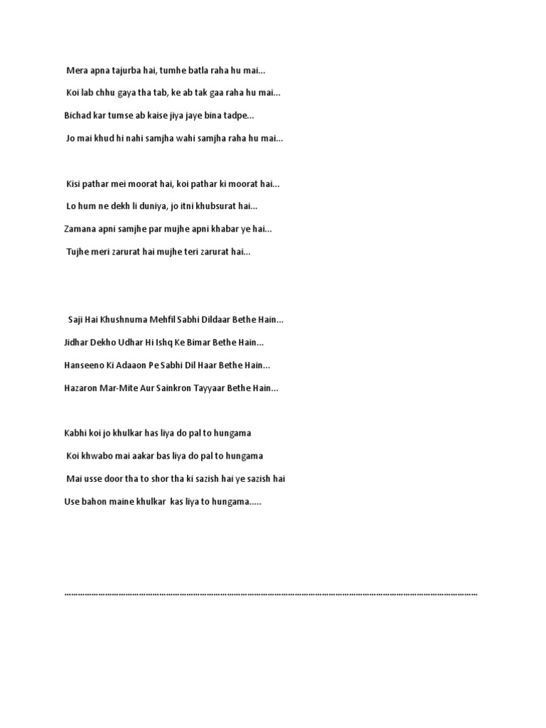 Koi Deewana Kehta Hai Koi Pagal Samjhta Hai - Koi deewana kehta hai, koi pagal samajhta hai, magar dharti ki bechaini ko bas badal samajhta hai main tujhse door kaisa hoon, tu mujhse door kaisi hai ye tera dil samajhta hai ya mera dil samajhta hai.