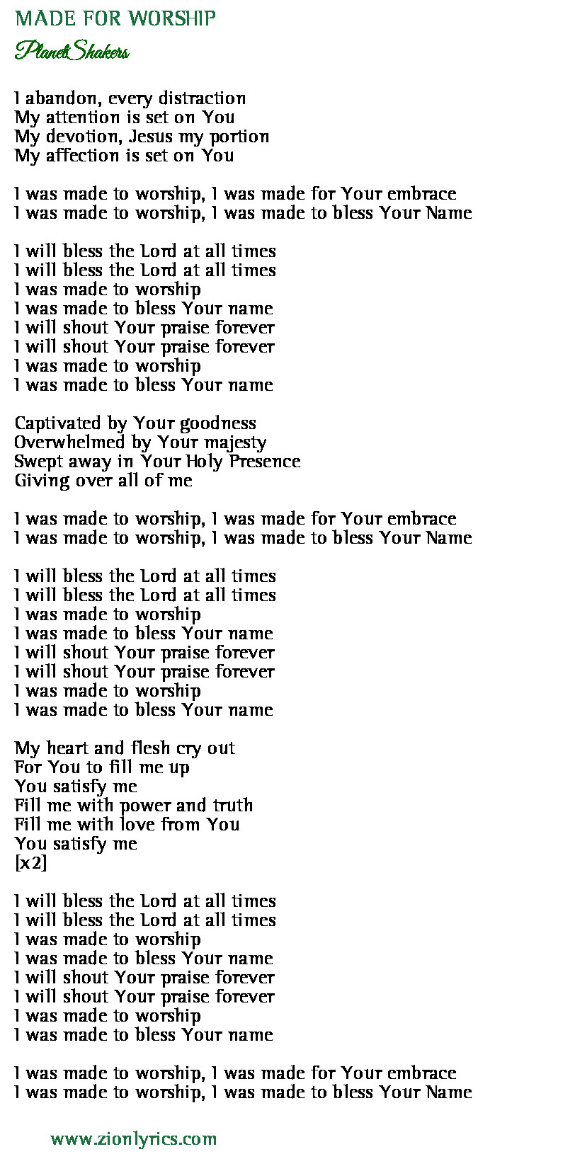 Made For Worship Lyrics Planetshakers - You will also be able to view a list of the artists you are following from your account and quickly access all of their lyrics.