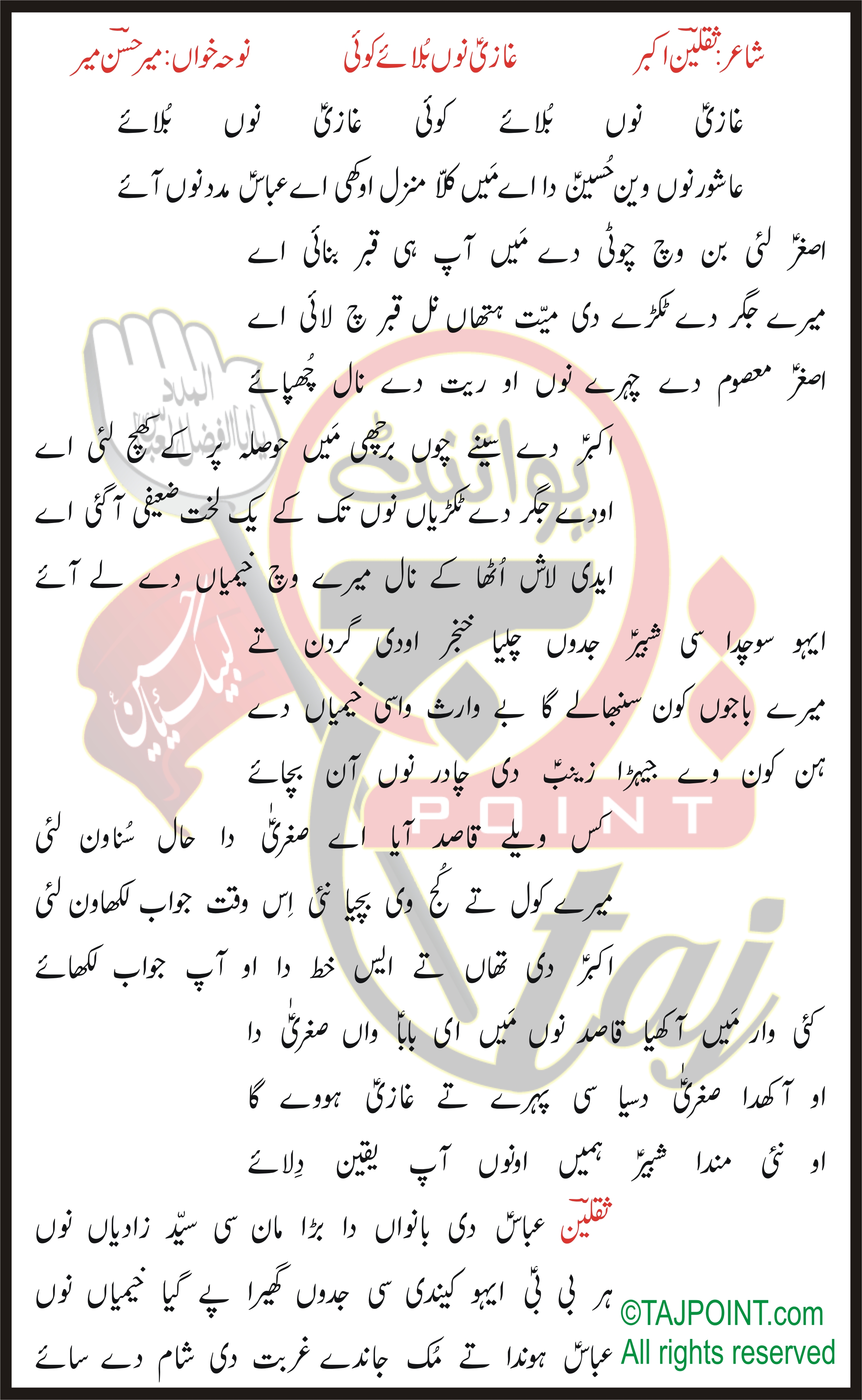 Ghazi Nu Bulaye Koi Ghazi Nu Bulaye Lyrics In Urdu And Roman Urdu - Manqabat e taaj ush shariyath view lyrics.