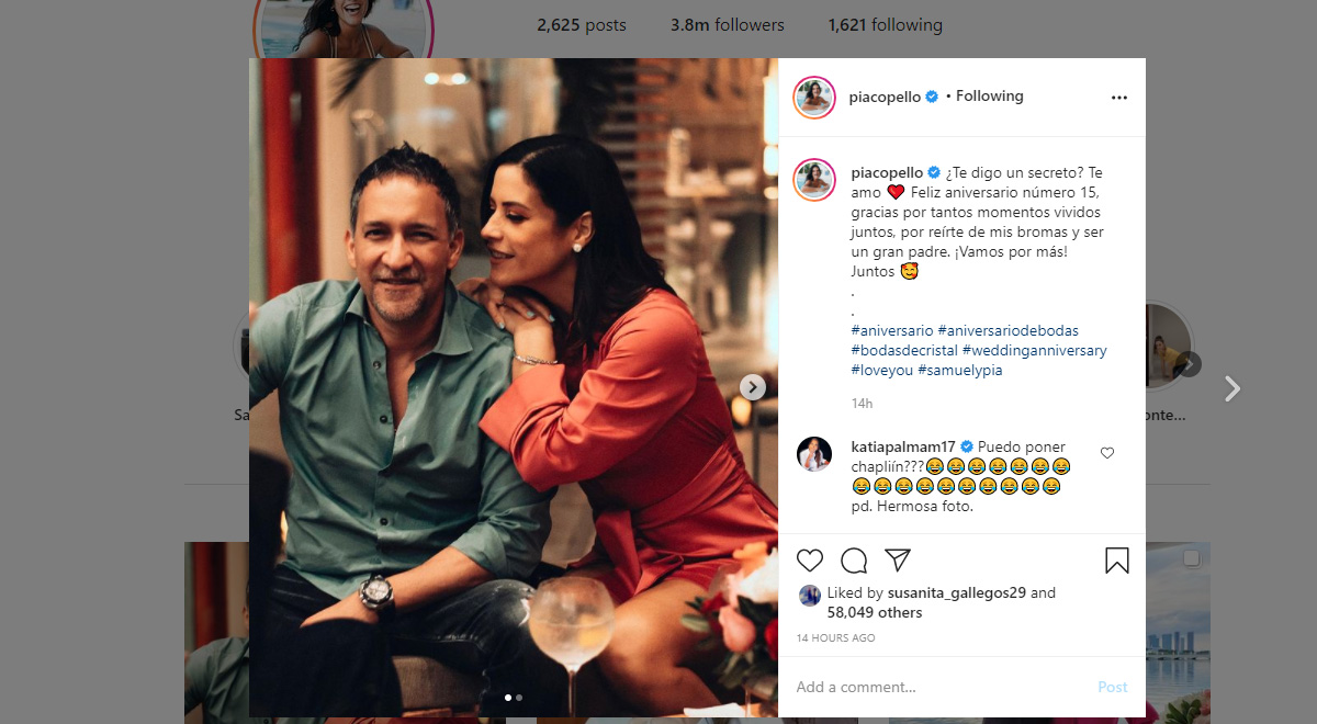 Instagram Maria Pia Copello Sorprende Con Romantico Mensaje Para Su Esposo Tvmas El Comercio Peru - Mientras maria pia copello ama el baile, el detesta el ritmo, aunque aquel 14 de enero de 2006, ano en que se casaron, seguramente celebraron el samuel dyer prefiere guardar perfil bajo, pero no escatima en detalles con su esposa, como disfrutar de romanticas vacaciones juntos dentro y fuera.